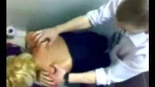Волосатый мужик приказал стройной блондинке снять белые шортики, а потом отшлепал её по заднице крепкой рукой. Закончив бить милашку по попе, небритый любовник приказал сделать минет, после которого насадил на большой хуй узкий анал партнерши с чокером на шее и начал активно долбить её в жопу на просторной кровати. В порно снимались: Hime Marie.